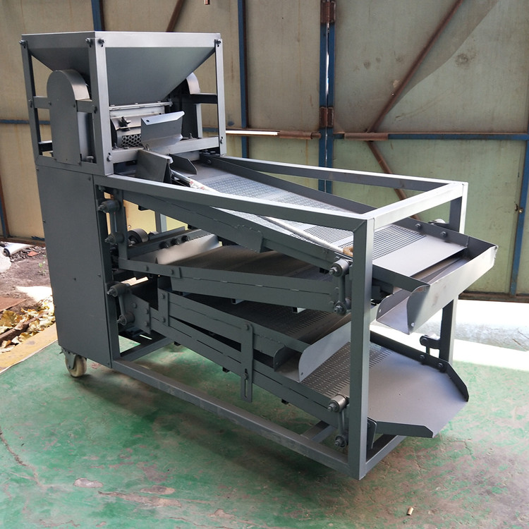 花椒振動篩分機,主要是將花椒的枝、葉、殼、籽、梅花椒、雜質等分別清選出來,大大節省了勞動力,提高了篩分產量,是清選花椒的理想設備。本機主要是由電機、風機、上下篩、傳動裝置、機架等部件構成,并且根據以前可戶篩分的需求,我們在不斷的更新改進,新型的花椒篩現在是8層篩分,底篩加長,這樣篩分的精度會更高,改進后的花椒篩客戶反映非常好用。